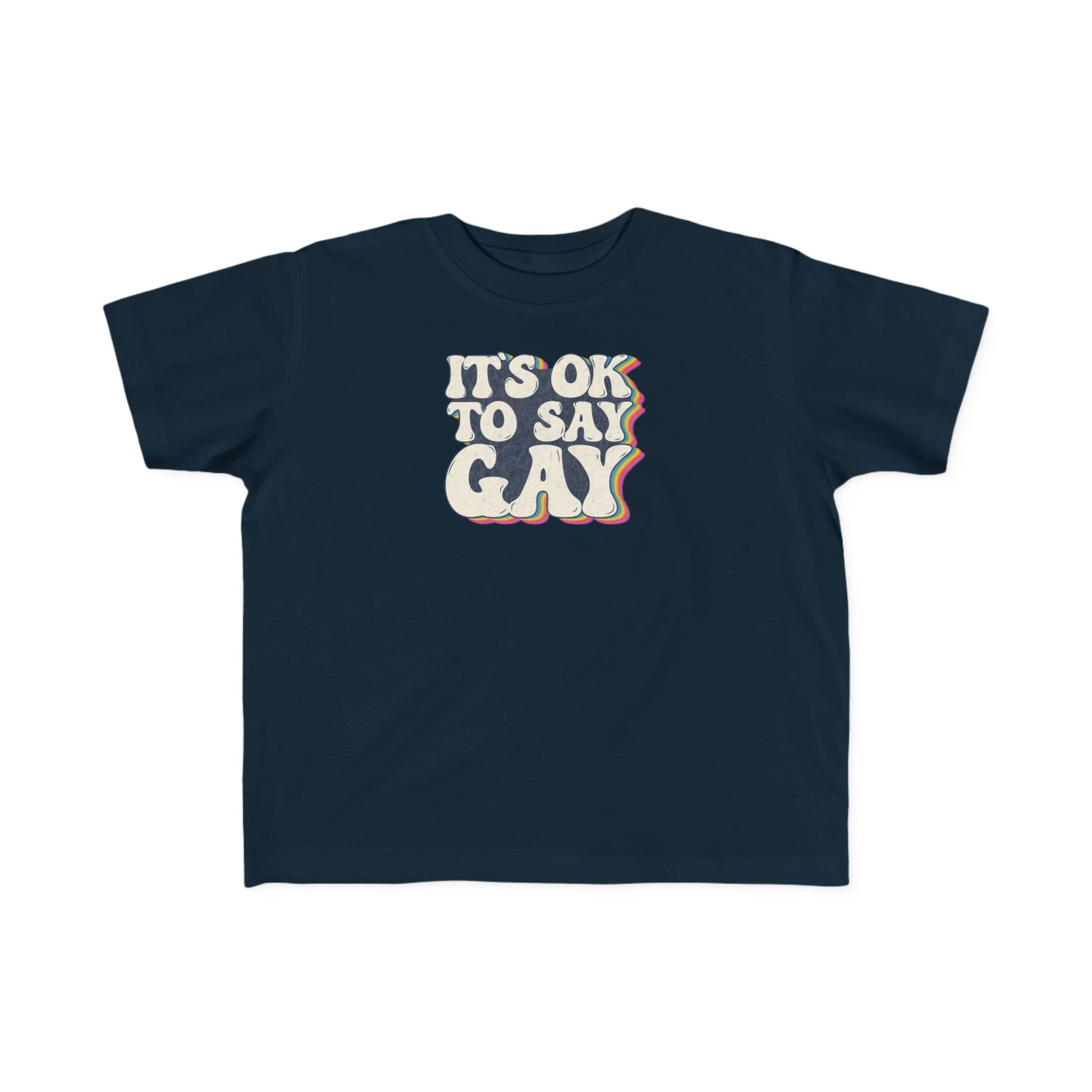 It's more than OK—it's necessary. The 'It's OK to Say Gay' toddler tee embraces love and acceptance in every hue. Make a statement that's as bold as it is beautiful, and wear it with pride.