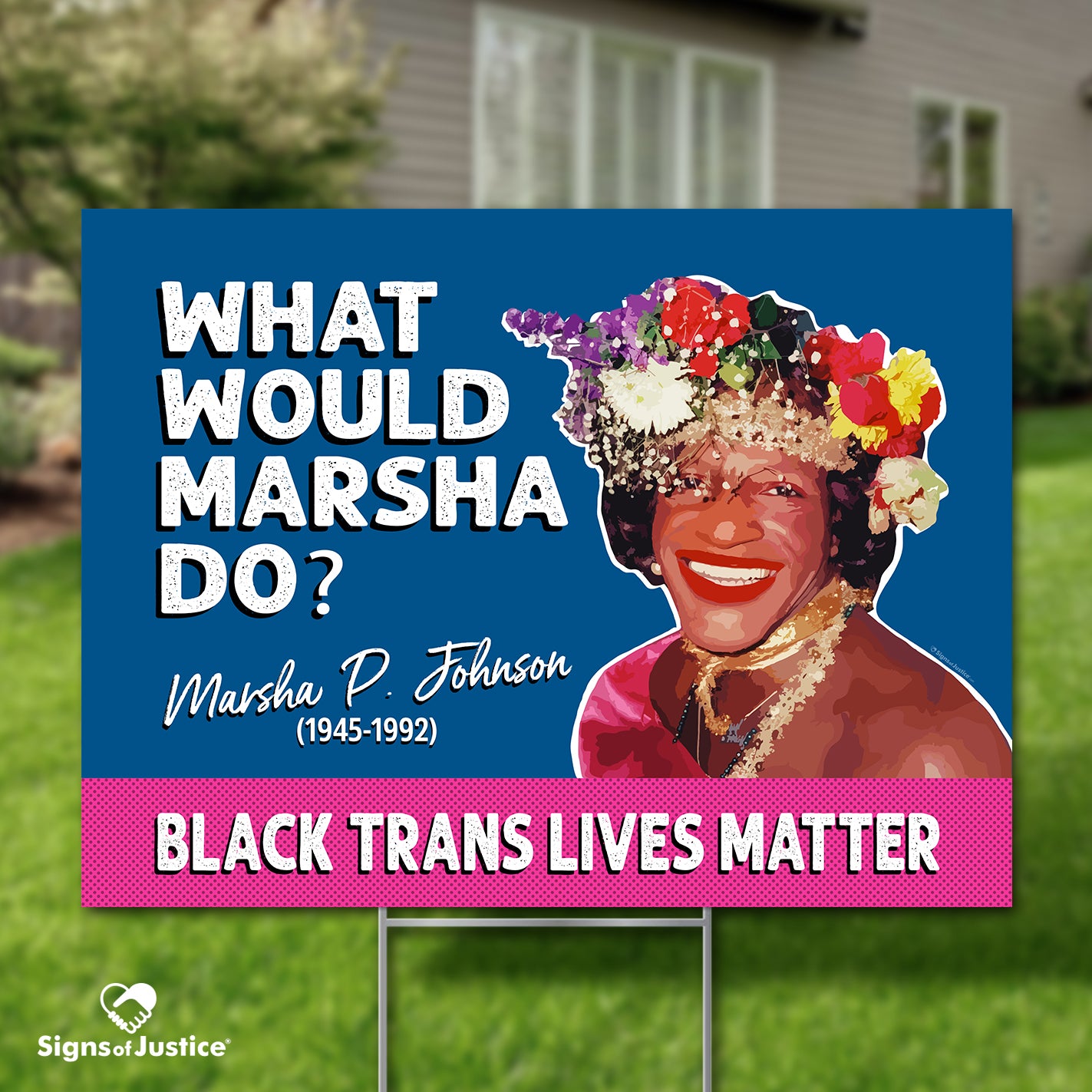 Our 2-sided What Would Marsha Do? Yard Sign is printed on premium corrugated plastic and will show your neighborhood which side of the social justice fight you’re on. Each indoor/outdoor yard sign is printed in hi-resolution and is weatherproof so it can stand proudly in all conditions.